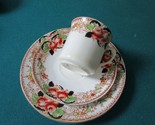 ANTIQUE Fenton Staffordshire England SAMUEL RADFORD 1920s,TRIO CUP-SAUCER-PLATE Florida Pattern, cup 3" tall by 3" and saucer is 5 1/2", very good condition for these old items, no chips, some light surface scratches, color fading and rough borders commensurate with age.