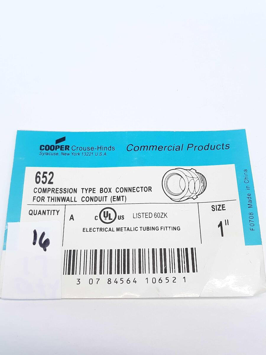 - Cooper 652 Compression Type Box Connector Size 1 In. Lot of 16