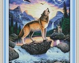 14CT Cross Stitch Pattern, Howling Wolf Forest Stream In The Wild
