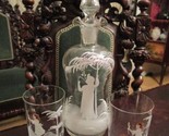 CRYSTAL GLASS DECANTER AND 2 TUMBLERS HAND PAINTED WHITE AND COLOR FLOWERS [*G-2] DECANTER IS 10" TO STOPPER AND GLASSES ARE 3 1/2 X 2 1/4" VERY GOOD CONDITION, SOME LIGHT SURFACE SCRATCHES COMMENSURATE WITH AGE About Us About Us Payment Terms Returns About Us