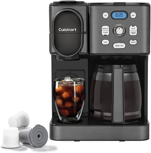 Get your coffee the best way- your way. Drip or pod, hot or iced, single cup, or carafe for 12, the Cuisinart 2-in-1 Coffeemaker can do it all! Brew a full pot 25% faster with Extreme Brew technology and fully programmable features. Instantly brew a single serving of hot coffee in 5 cup sizes with any pod, including Keurig K-Cup, or the reusable HomeBarista filter. Or brew over ice for delicious coffee that refreshes! Experience complete brewing versatility and customizable convenience, courtesy of Cuisinart! Cuisinart: From our state-of-the-art kitchen products to the moments and meals you create with them ? when you bring more joy to the heart of your home, everything?s A Work of Cuisinart.