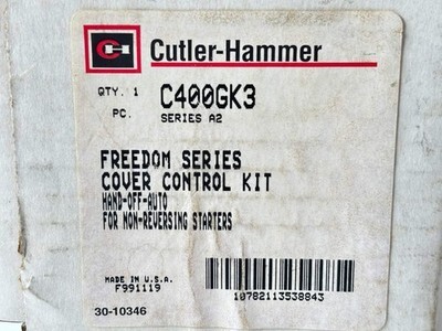 Cutler?Hammer C400GK3 Cover Control Kit New The Cutler-Hammer C400GK3 is a cover/control kit designed for NEMA 1 enclosures, used with the Freedom series non-reversing starters. It features a hand/off/auto selector switch configuration ideal for motor control applications. The kit mounts via flange and offers a compact solution for integrating manual control and selector functionality. Robust and industry-rated, it simplifies control panel installations by pre-packaging operator hardware. Compatible with Eaton/Cutler-Hammer starter assemblies and designed for reliable long-term operation. Listed by: Maksim (Sales Team) ?Self-discipline is doing what?s right instead of doing what you feel like doing. That?s the meaning of self-disciple.?~ Eliud Kipchoge (A positive moment brought to you by Help Resale) About Us Welcome to Help Resale, your go-to consignment shop where value meets quality. At Help Resale, we're dedicated to providing you with an exceptional shopping experience, whether you're looking to find the best deals or consign your items. Need to buy a product, but don't see it in our store? Please feel free to reach out to us and we will help you find it! Help Resale 7200 Fair Oaks Blvd Suite 120 Carmichael CA 95608 Business Hours: Monday-Friday: 9:00 am to 5:00 pm (PST) All product and company names are trademarks TM or registered trademarks of their respective holders. Use of them does not imply any affiliation with or endorsement by them.