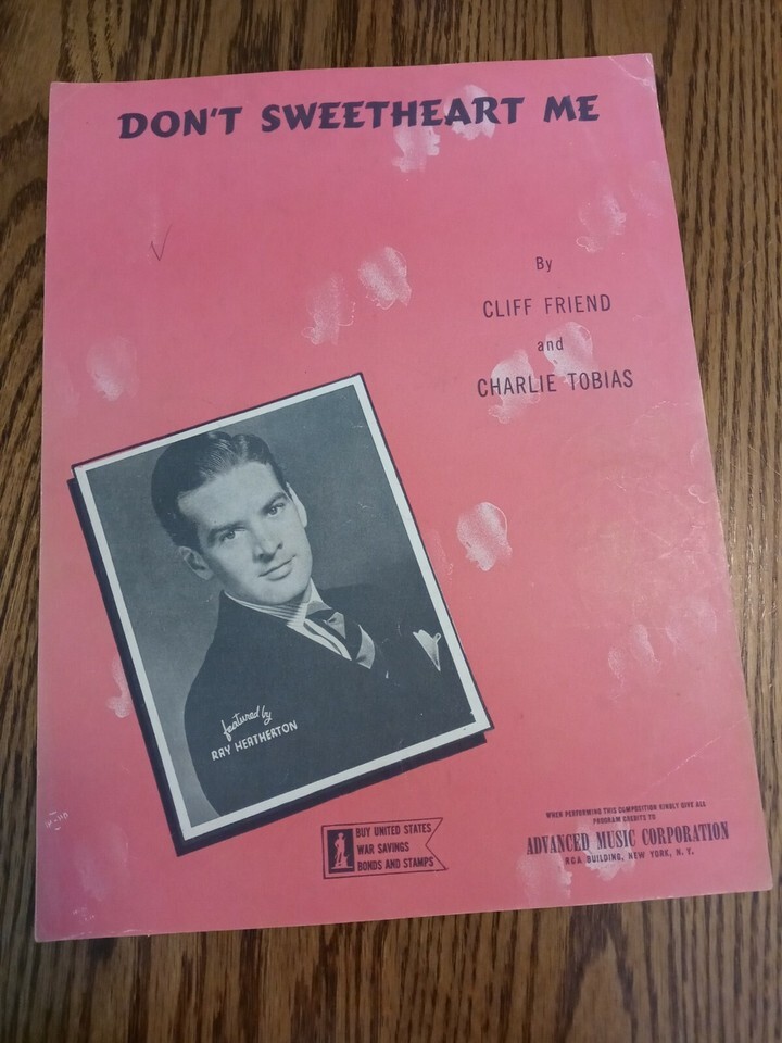 - Don’t Sweetheart Me (1943) Piano Sheet Music by Friend, Tobias, ft Heatherton