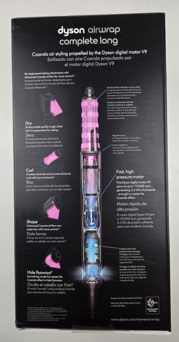 Dyson Airwrap Complete styler is engineered for multiple hair types and styles. This set comes with 1.2-inch and 1.6-inch barrels to curl and wave hair, and brushes to smooth and volumize, allowing you to dry and style simultaneously. The Dyson Airwrap Comp