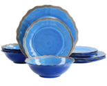 - Elama Roma 12 Piece Melamine Dinnerware Set in Blue