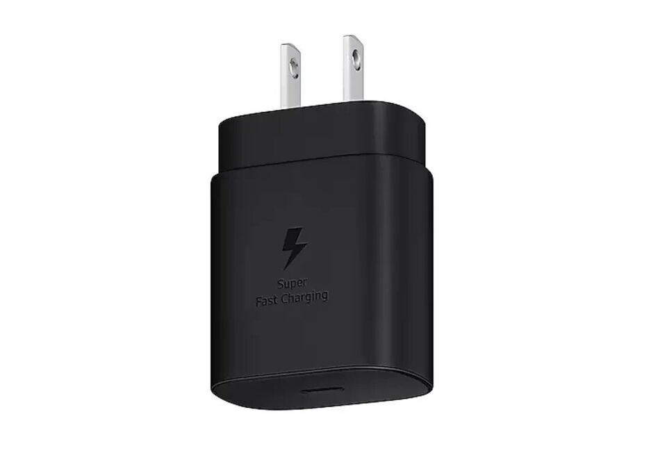This 25W Type USB-C Super Fast Wall Charger is the perfect accessory for your Samsung Galaxy S22, S21, S20, Note 20, or any other universal compatible model. With its sleek black design and matte finish, it will seamlessly blend in with your wall decor. This wall charger is made of durable plastic and is designed to be mounted in any convenient location.