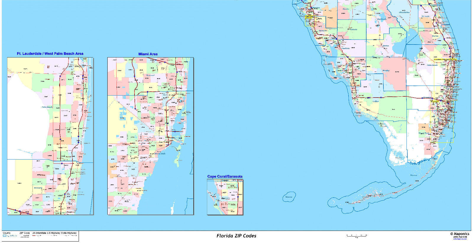 - Florida State Zipcode Laminated Wall Map