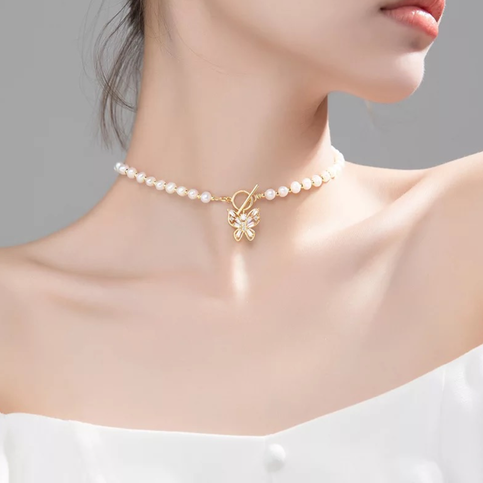 - Gold Pearl Necklace 14K Gold Over Sterling Silver Freshwater Pearl Jewelry