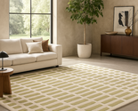 - Hand-Tufted Wool Rug – Grid Pattern in Olive Green and Ivory