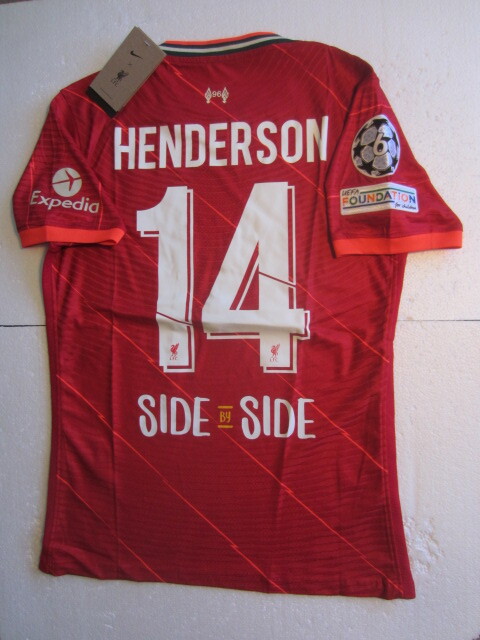 - Jordan Henderson Liverpool FC UCL Match Slim Red Home Soccer Jersey 2021-2022