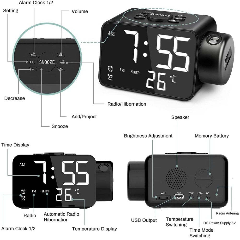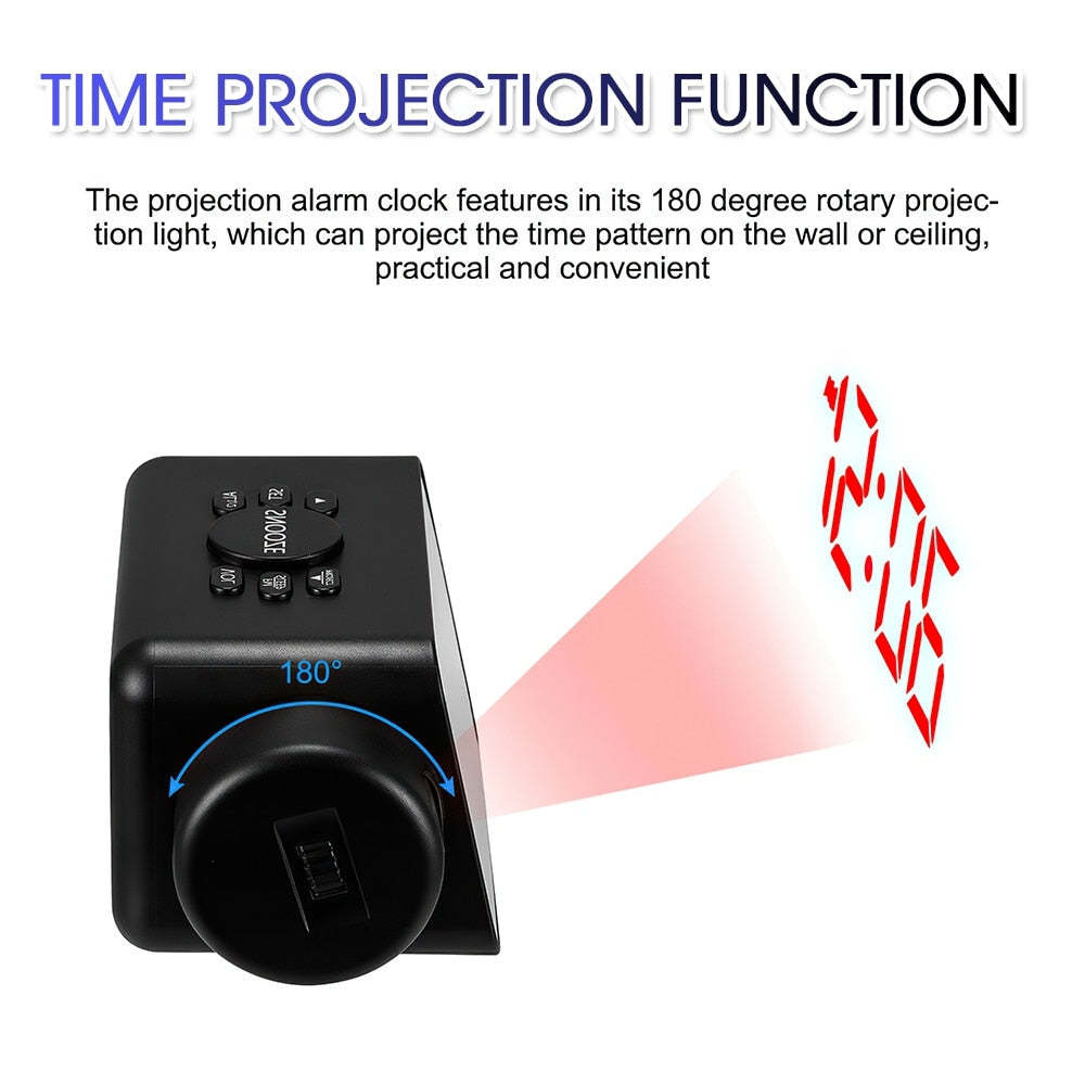 - LED Digital Projection Alarm Clock FM Radio Projector Wall Clock Snooze USB Time