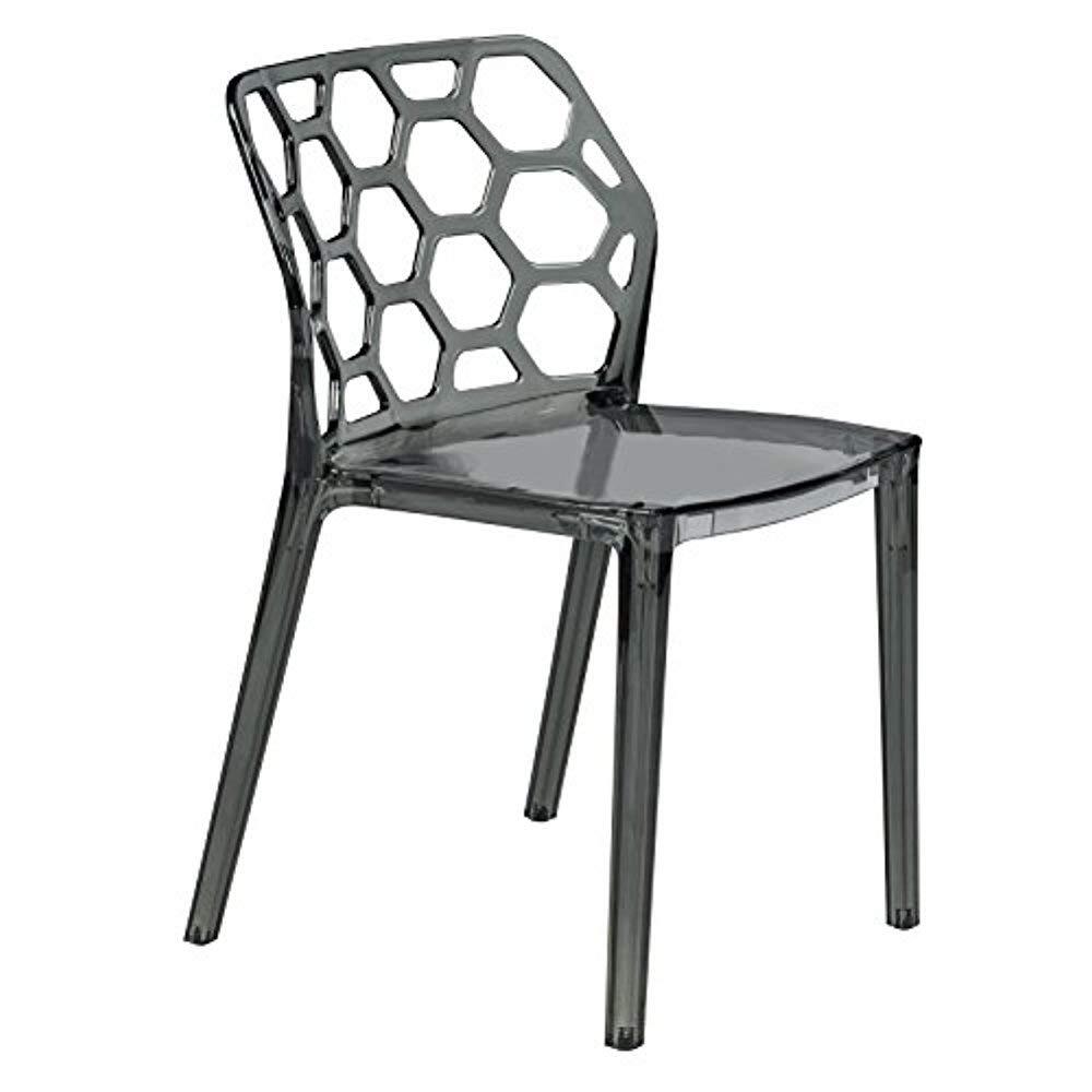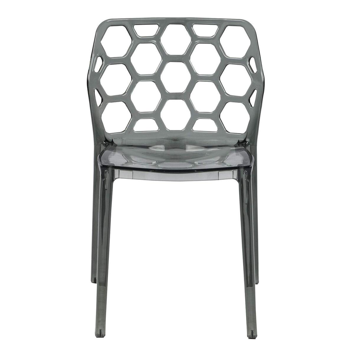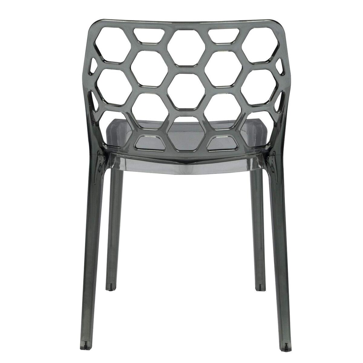 Product description: Elevate your interior with the Dynamic Dining Chair, a stunning acrylic chair designed for modern living. Combining the durability of Lucite with a unique honeycomb-shaped backrest, this chair is lightweight, stackable, and perfect for any setting. Add sophistication to your dining area, workspace, or any room with this versatile and stylish acrylic desk chair.
