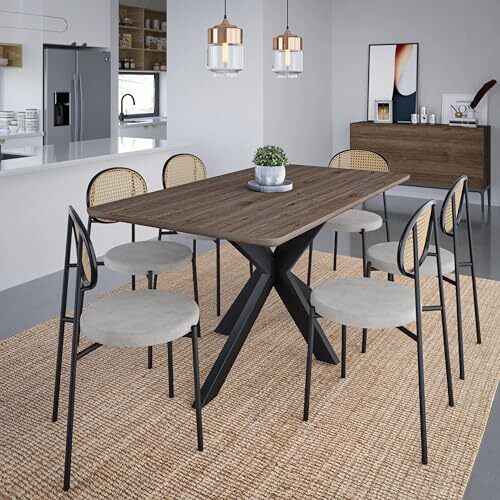 Special feature: Introducing the Euston Dining Chair, where style, comfort, and durability come together seamlessly. This chair features a sleek stainless steel frame and an intricately woven rattan backrest that provides a natural aesthetic and optimal breathability. The sturdy base supports up to 330 pounds, ensuring reliable everyday use, while the powder-coated finish resists scratches, rust, and wear, maintaining its sleek appearance over time. The round, plush seat is upholstered in luxurious velvet and fi