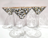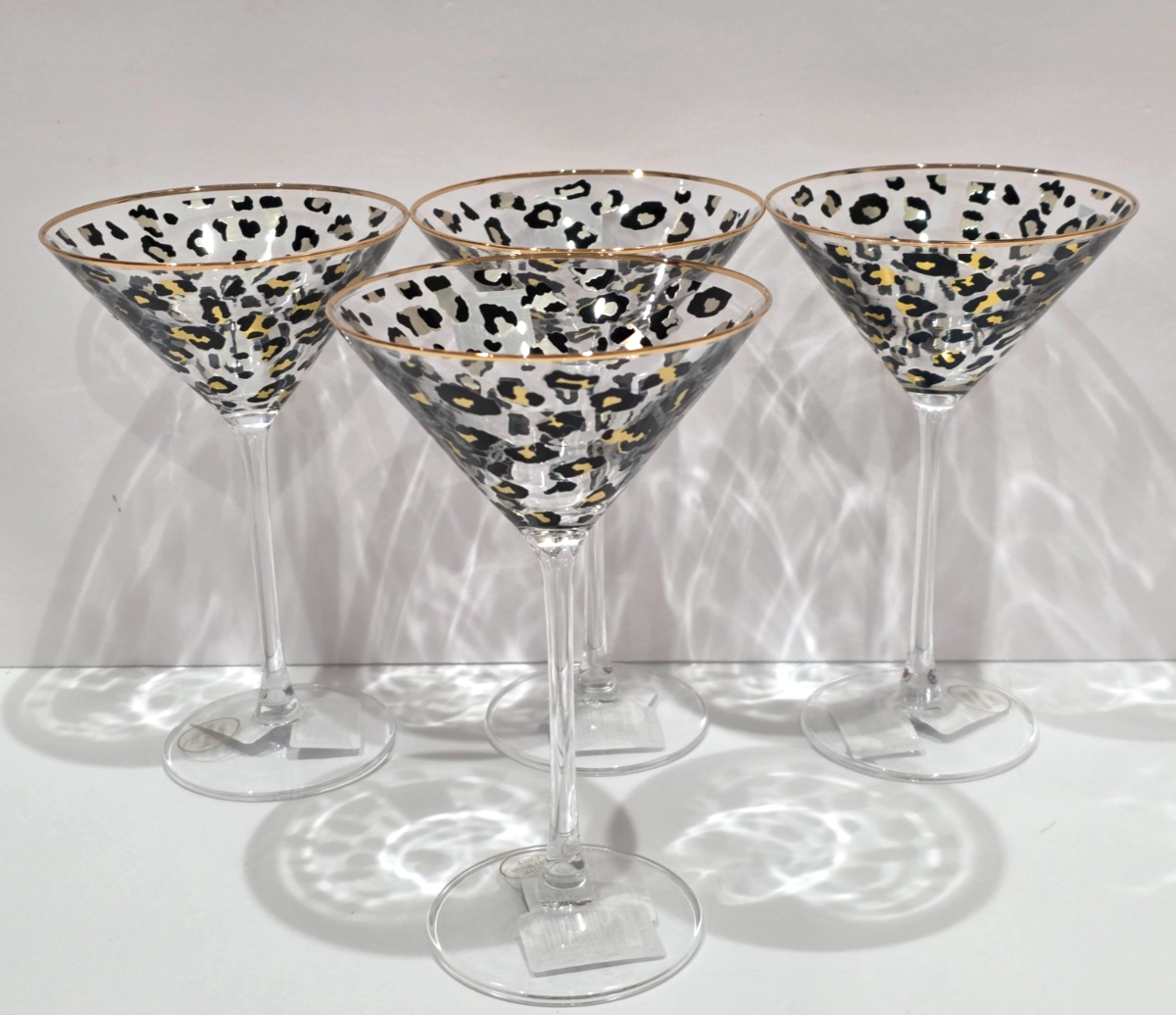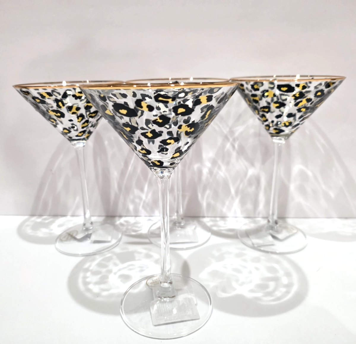 Leopard Print Martini Cocktail Glasses Black Gold GORGEOUS! 4pc