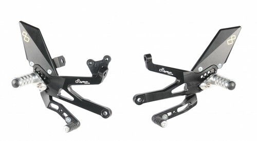 Our rearsets adopt LighTech?s unique design referred to as the 'Track System': with this system it is possible to adjust the position of the footrest, quickly and accurately. The adjustment is made by sliding the footrest support on two tracks made at different levels, to a maximum of 8 positions, thanks to the holes present on the support. Unscrew only 1 bolt, and you can quickly and easily adjust the position or change the footpeg after a crash during a speed race, during a track-day or during an endurance race!