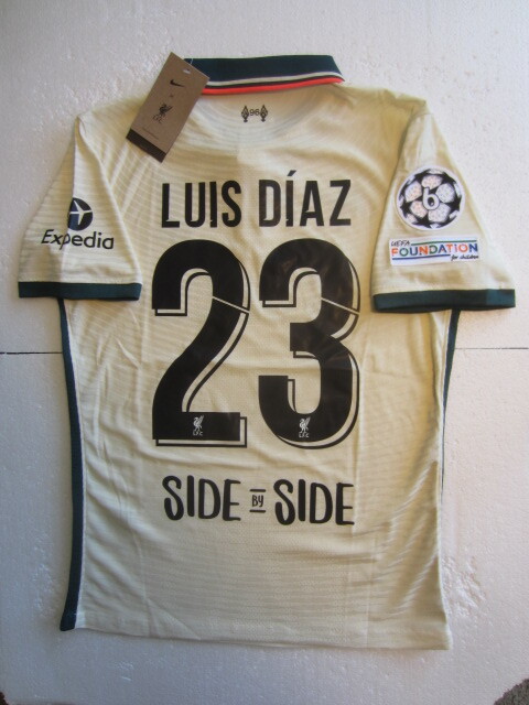 - Luis Diaz #23 Liverpool FC UCL Match Slim Fit Beige Away Soccer Jersey 2021-2022