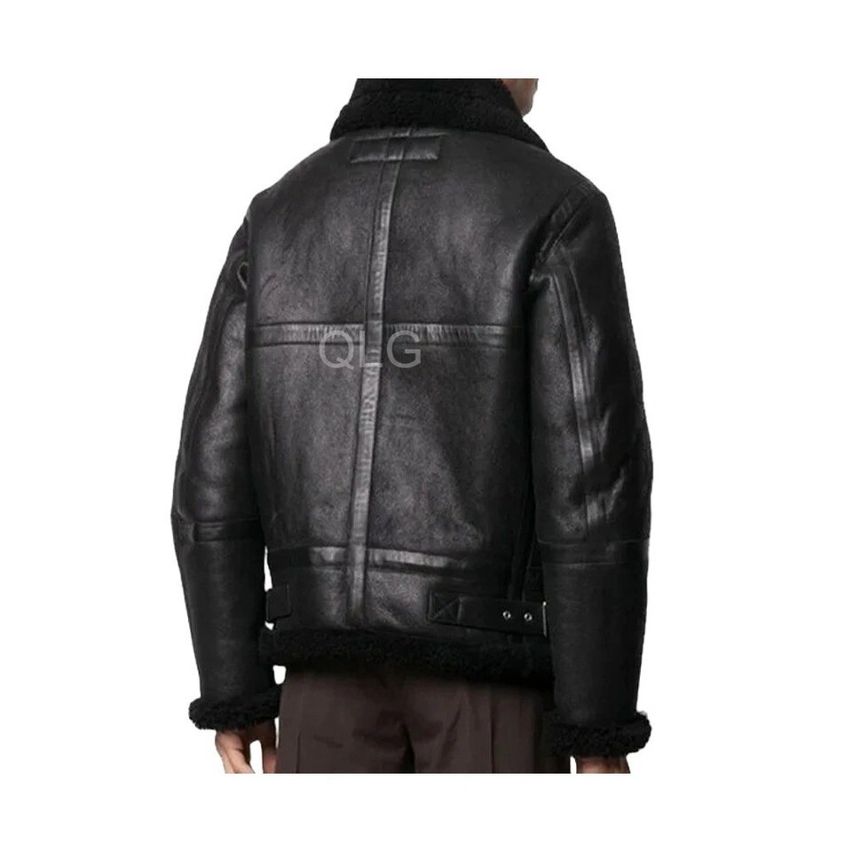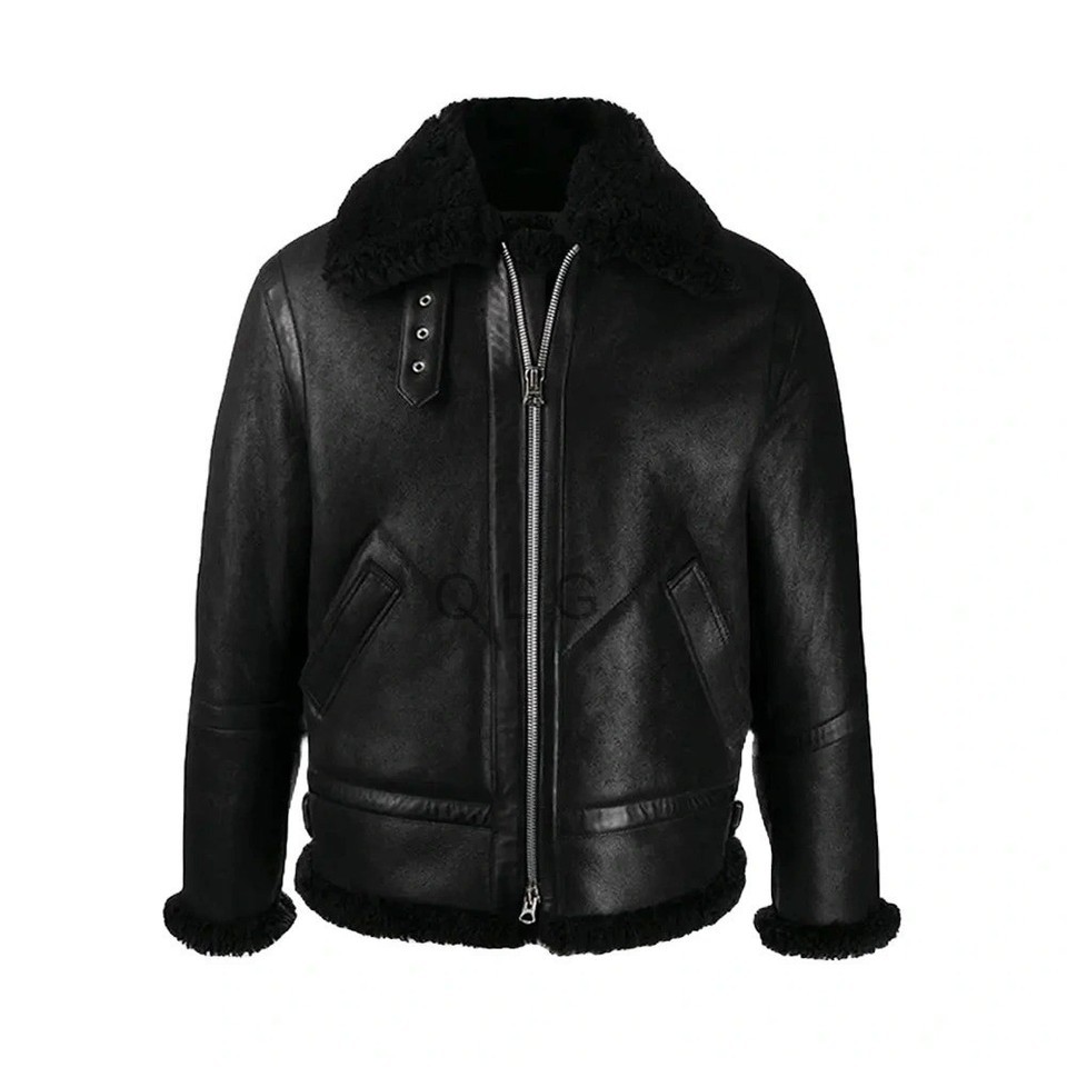 - Mens Genuine Black Leather leder Jacket Vintage Retro with Synthetic Fur