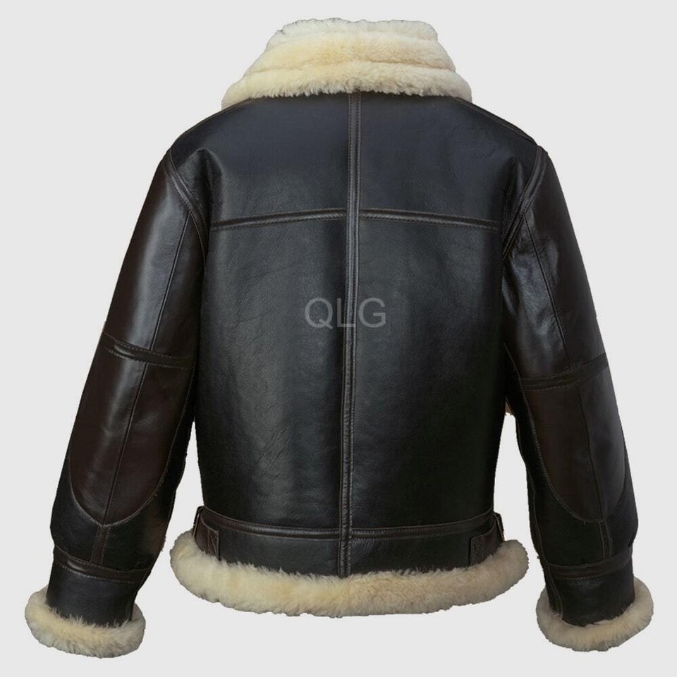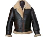 - Mens Genuine Brown Leather leder Jacket Vintage Retro Collar with Synthetic Fur