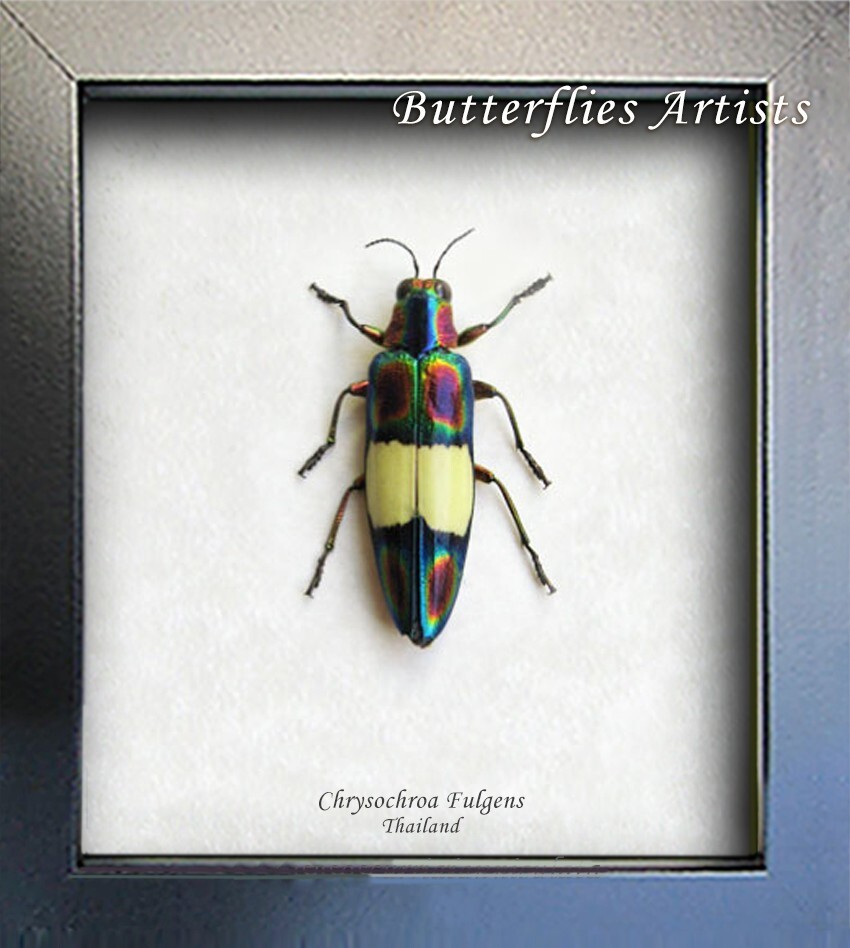 ??????????????????? ? Shadowbox: Real specimen professionally framed in a museum-quality archival display. ??????????????????? ?? Species: Chrysochroa Fulgens ?? Native Origin: Thailand ?? Frame Details: 7” H x 5” W x 1 ” D ?? Glass: UV-protected glass with parchment-style background and printed species name ?? White Frame: Available upon request ??????????????????? ? Our displays combine natural beauty with professional preservation techniques. Each specimen is ethically sourced, sealed, and preserved for long-term archival quality. A perfect gift for collectors, educators, interior designers, or anyone who loves the natural world. ??????????????????? ? International shipping available — contact us for rates. Search “Butterflies Artists official store” online for worldwide options. ??????????????????? ?? Handcrafted by Butterflies Artists 2025. All Rights Reserved..