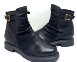 MIZ MOOZ RUCHED LEATHER BOOTIE SIDE ZIP BUCKLE 37EU / 7US BLACK Z-114