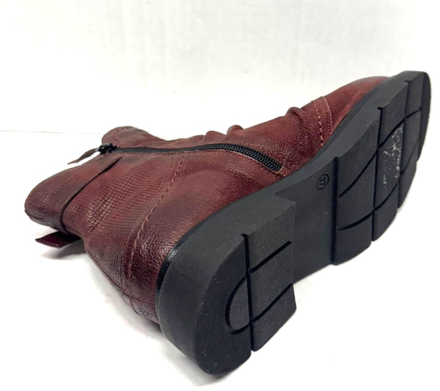 - MIZ MOOZ RUCHED LEATHER BOOTIE SIDE ZIP BUCKLE 37EU / 7US WINE Z-107