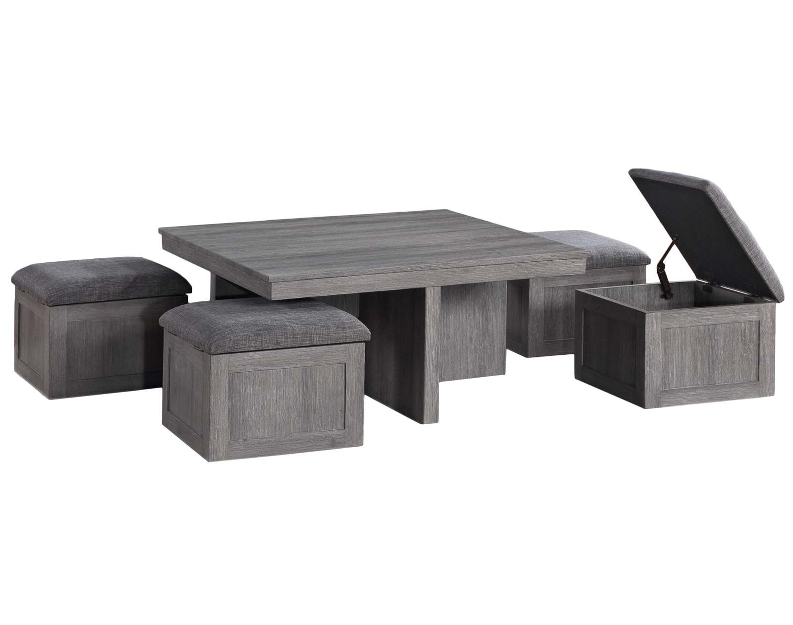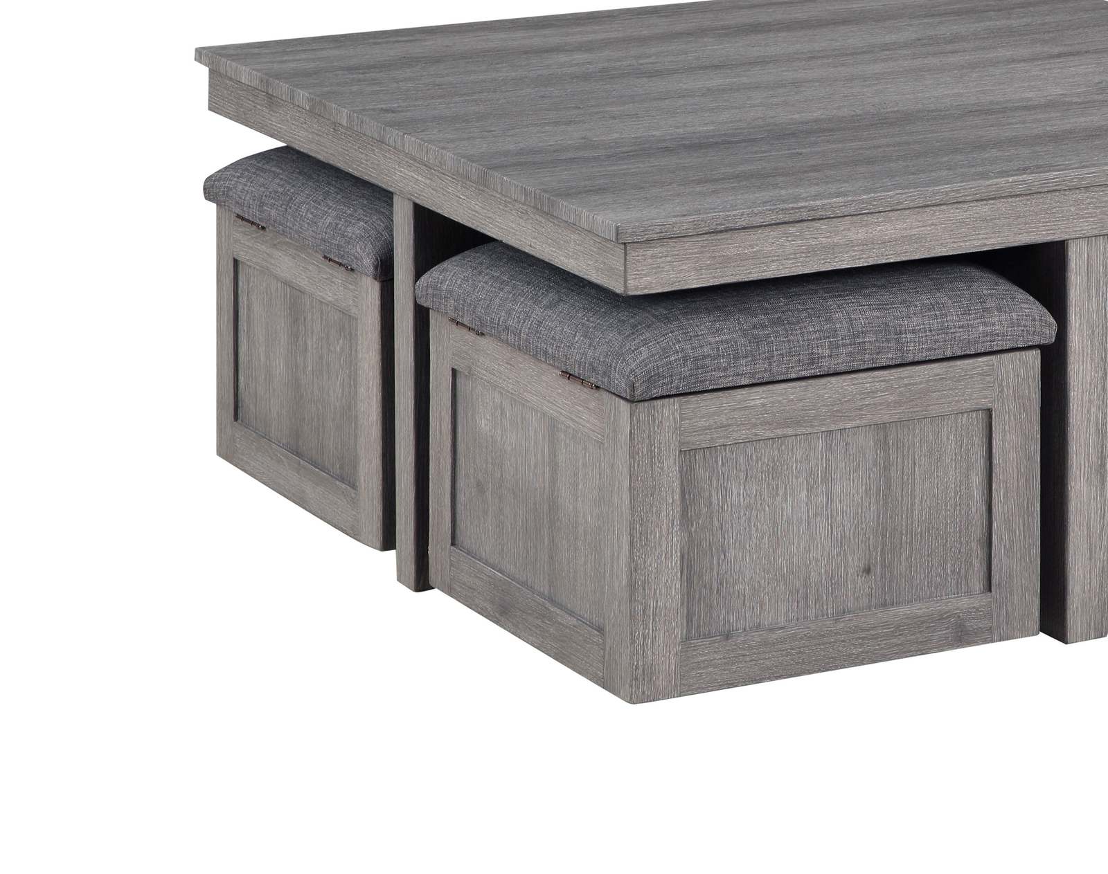 - Moseberg 38" Distressed Gray Coffee Table with Storage Stools