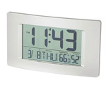 This sleek device features a huge 194 x 110mm LCD to provide convenient time display at a glance. In addition to the time however, it also includes an alarm clock, calendar, day of the week, as well as the current temperature and humidity (indoor). It features an integrated stand and hang-hole for desktop or wall mounting. It's a great looking unit that will suit any decor.