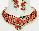 - Multicolor Red Flower Crystal Princess Collar Necklace Bib Pendant Earring Set