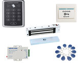 Doorbell EM Card Reader Kit for Access Control Applications with 280KG / 600 pounds of Electromagnetic Gate Lock, Push Button with ABS construction, Power Supply to convert from 110/220V AC to 12V DC to power up a whole access control system with 10 RFID EM4100 ID KeyTags