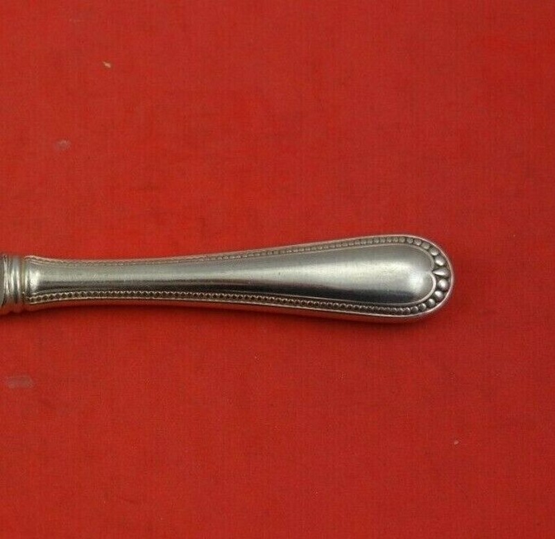 Sterling silver hollow handle with stainless blade Ham Slice, approximately 11 1/2" in total length, custom made in the pattern Newcastle by Gorham. The blade itself measures 7 1/2" with a guard at the base. One side of the blade is beveled and the other is serrated. The tip of the blade features two prongs for picking up meat. It is not monogrammed and is in excellent condition.