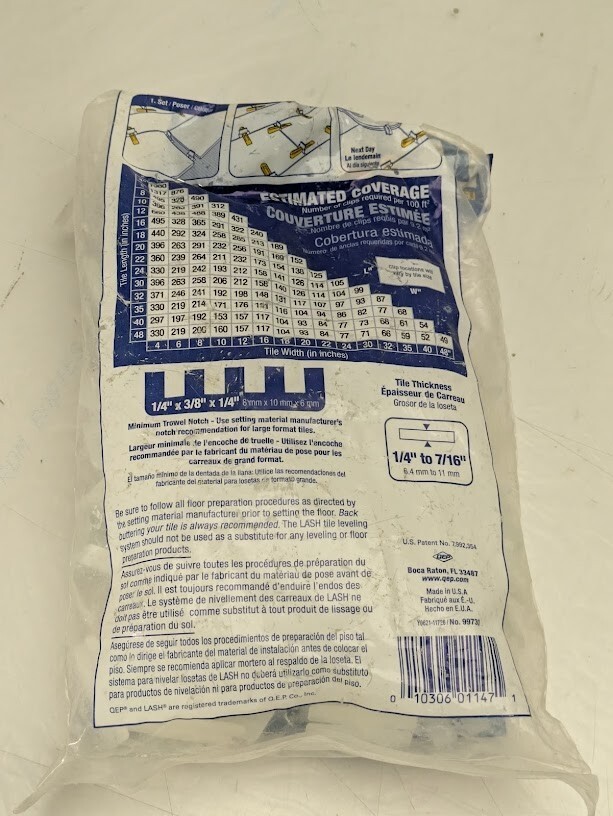 Refer to coverage chart for estimated number of clips and wedges recommended based on tile size and square footage