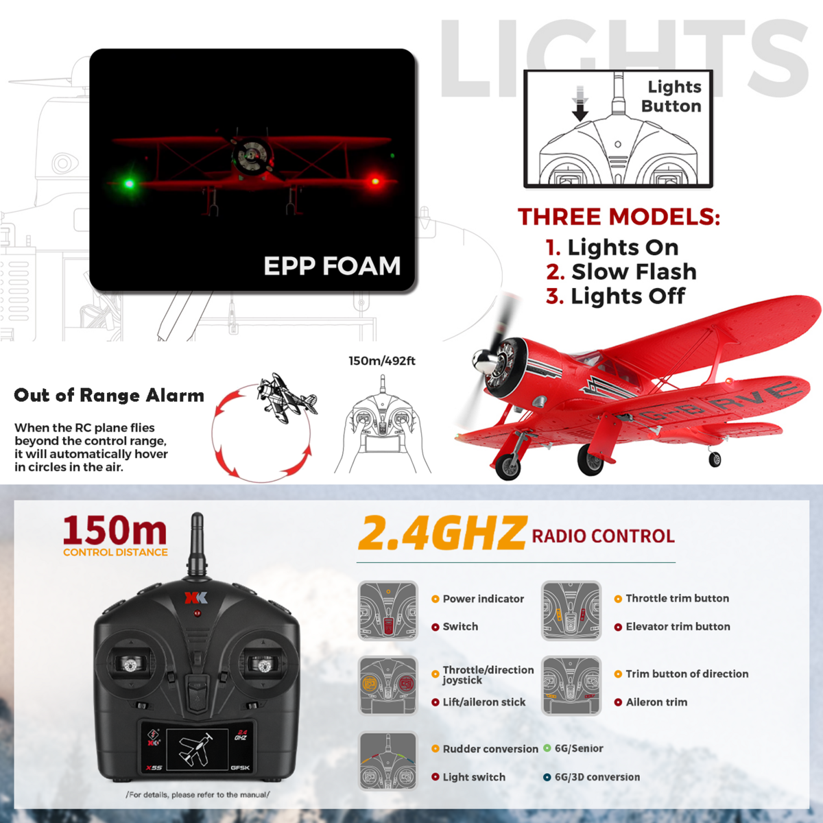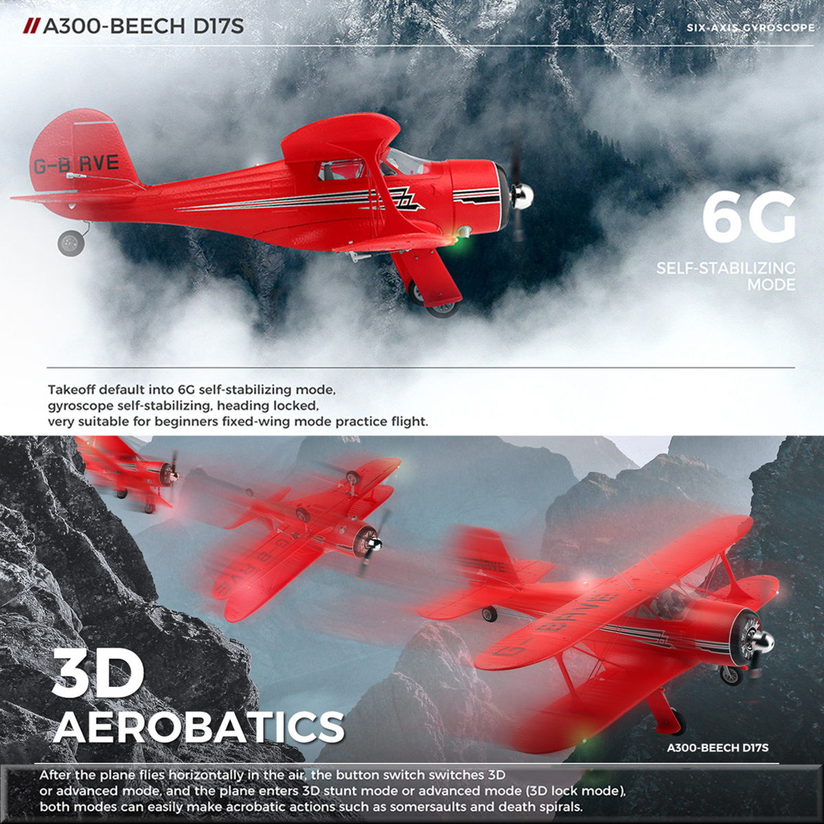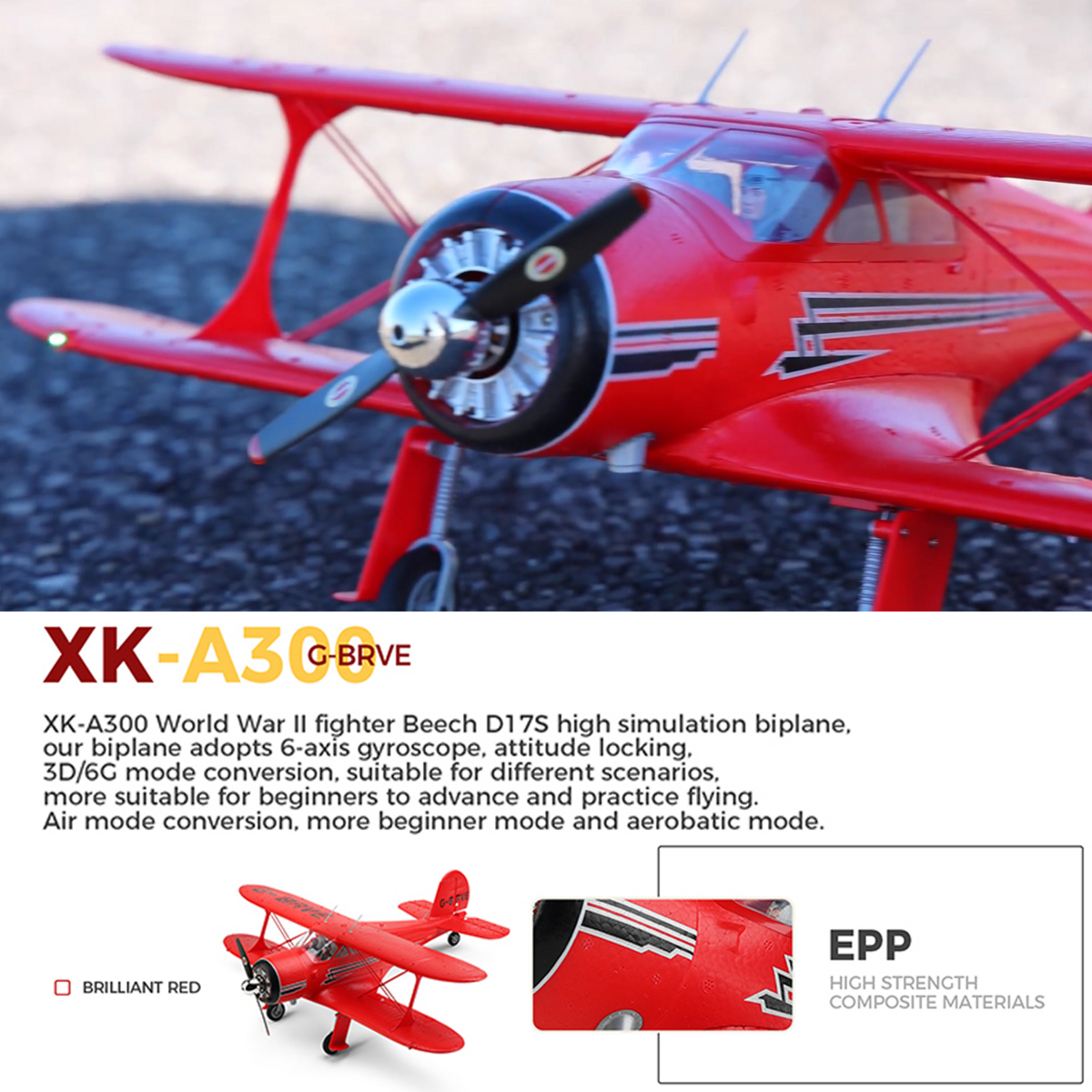 Type: XK (RTF) A300 Beech D17S Staggerwing w/2.4GHz 4ch Tx 6-Axis Gyro