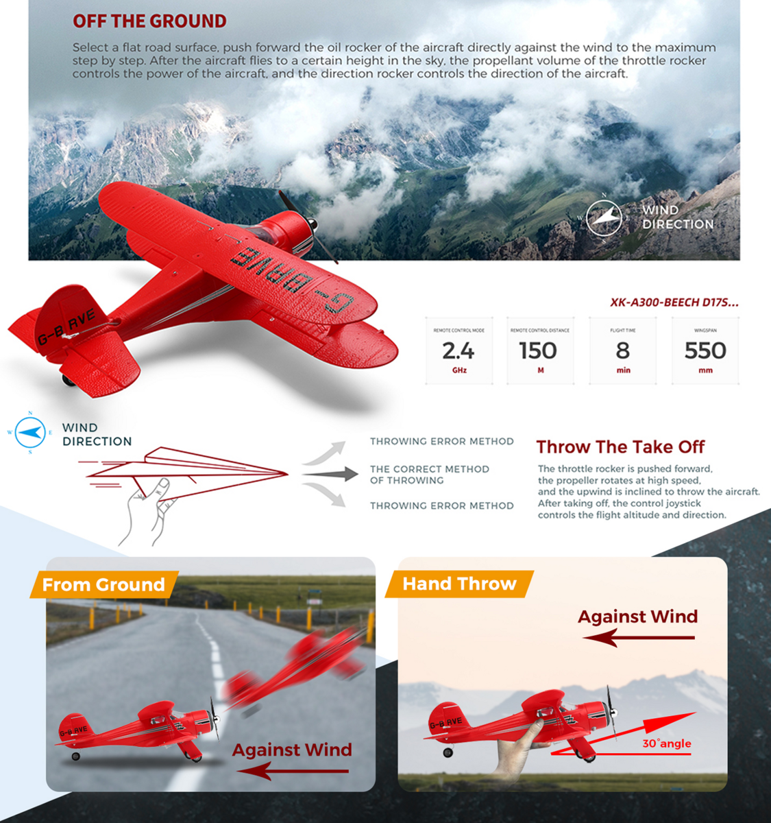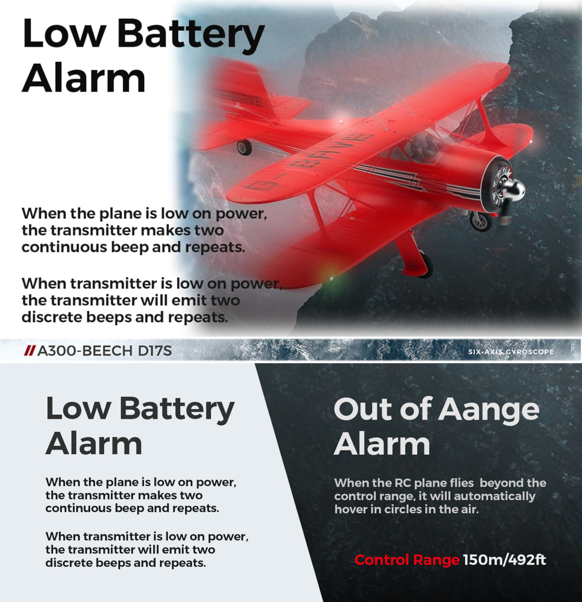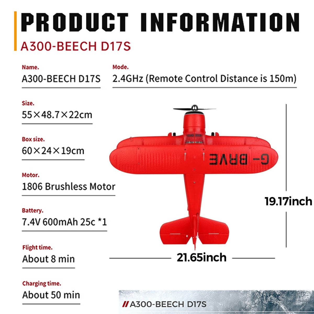 Type: XK (RTF) A300 Beech D17S Staggerwing w/2.4GHz 4ch Tx 6-Axis Gyro