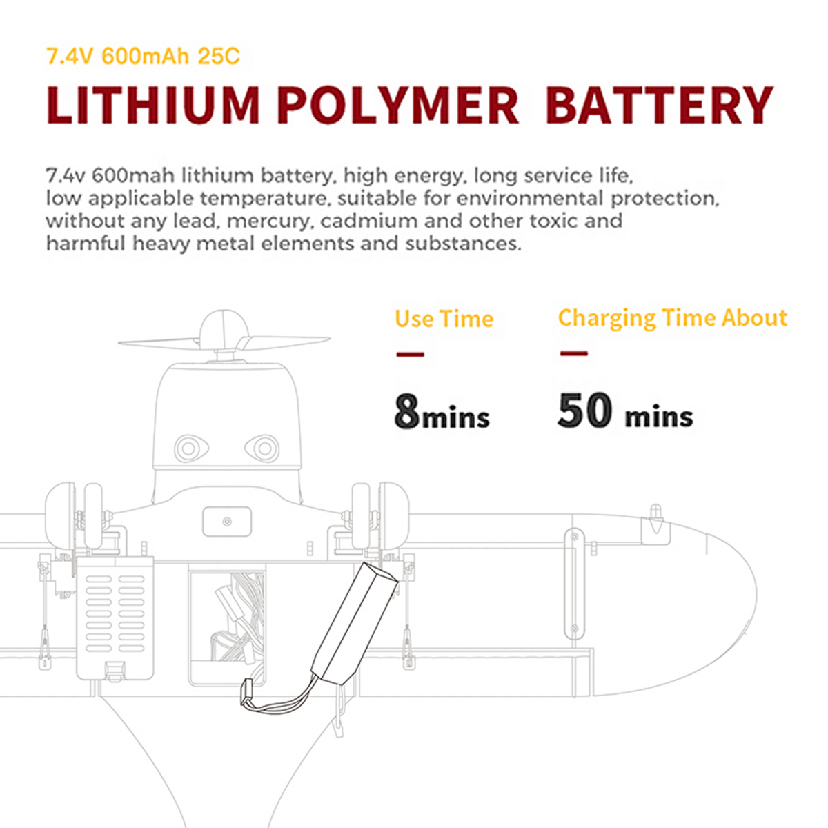 8. High-capacity high-capacity 7.4V 600mAh 25C lithium polymer battery, gliding flight time is about 8 minutes.