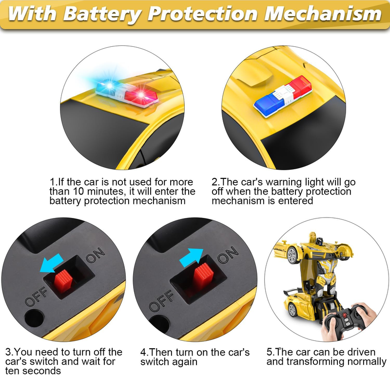 2-in-1 RC Transforming Car Robot: LNNKINE Remote Control Car -When you press the button on the remote control, this remote-control transforming car can easily switch between car and robot smoothly. Children can enjoy the fun brought by the automatic demonstration function.