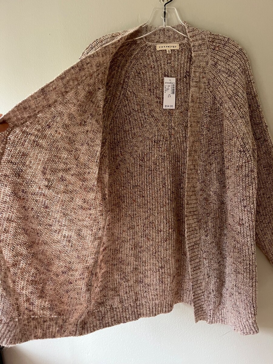 - Retrology Plus Sz 2X Knit Pink Cardigan Sweater Open Stretch Drop Shoulders