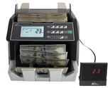 The RBC-E105-ADBK high-speed money counter with counterfeit bill detection incorporates three phase counterfeit detection with UV security thread detection, MG ink verification and IR sensor for half note, chain note, and dimensional validation counterfeit detection. This high speed dollar checking machine counts 1500 bills per minute while the high capacity back load hopper holds up to 500 bills at a time. Additional convenient features include automatic self diagnostics startup test, auto start/stop, and retractable handle for easy carrying. Add mode allows the user for counting up to 999 dollar bills. Batch mode allows the user to group cash counting by any predetermined quantity. Best for use with US dollar bills or compatible currency. Count your money with Royal Sovereign.