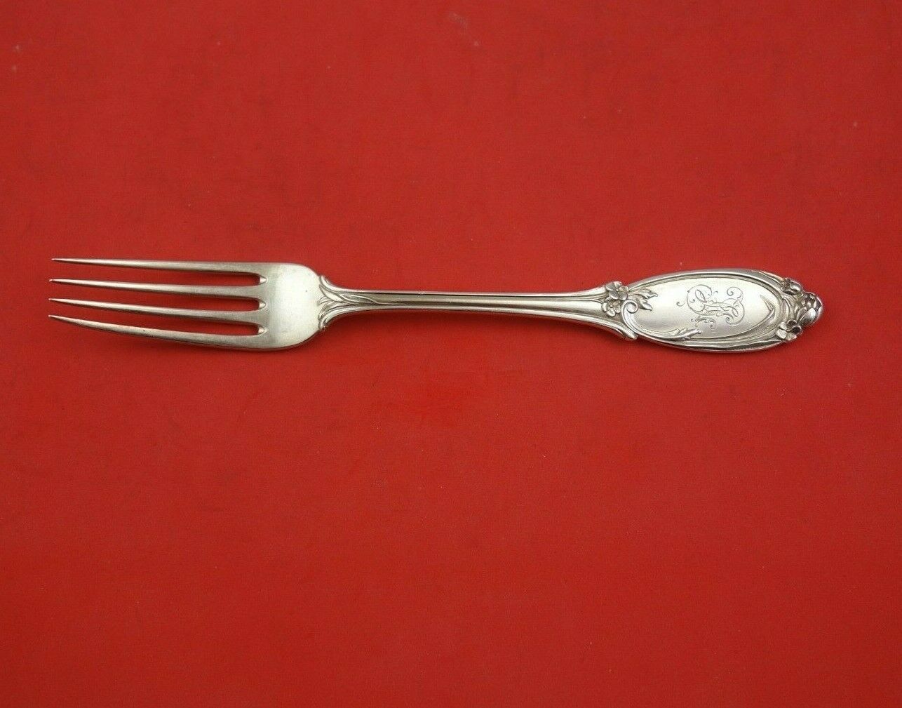 Russian sterling silver Salad Fork / Dessert Fork 6 3/4" (maker unknown). It is monogrammed (monos vary) and is in excellent condition.