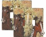 Ebros Rustic Western Chestnut Palomino Horses Double Toggle Switch Plate Cover 2pc Set