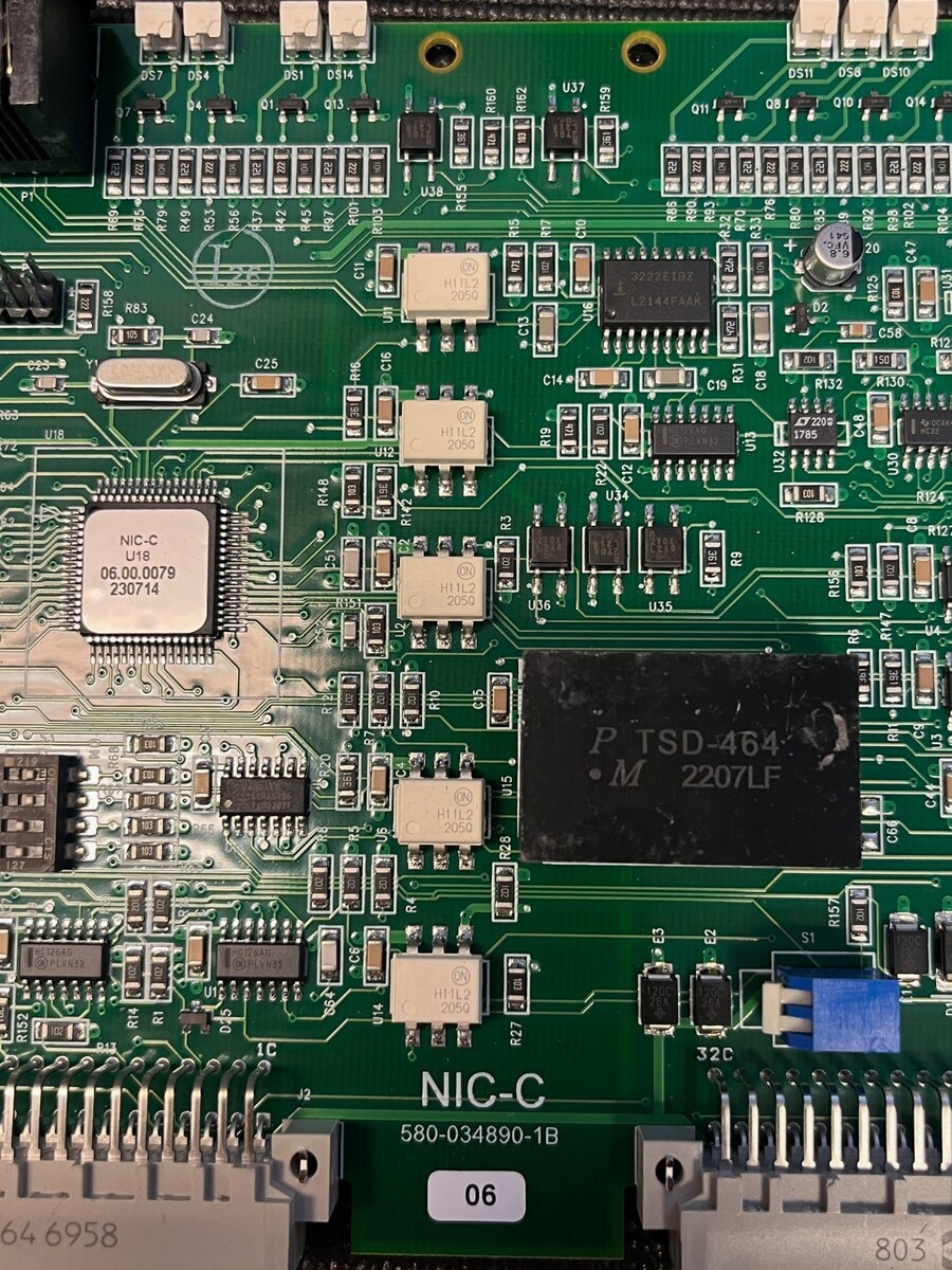 Siemens NIC?C 580?034890?1B fire alarm network interface card, used and untested, pulled from a working system. Listing is for the bare NIC?C board only with no faceplate/front panel or mounting hardware, ideal as a parts or replacement card for Cerberus PRO/Desigo/FireFinder?XLS panels.