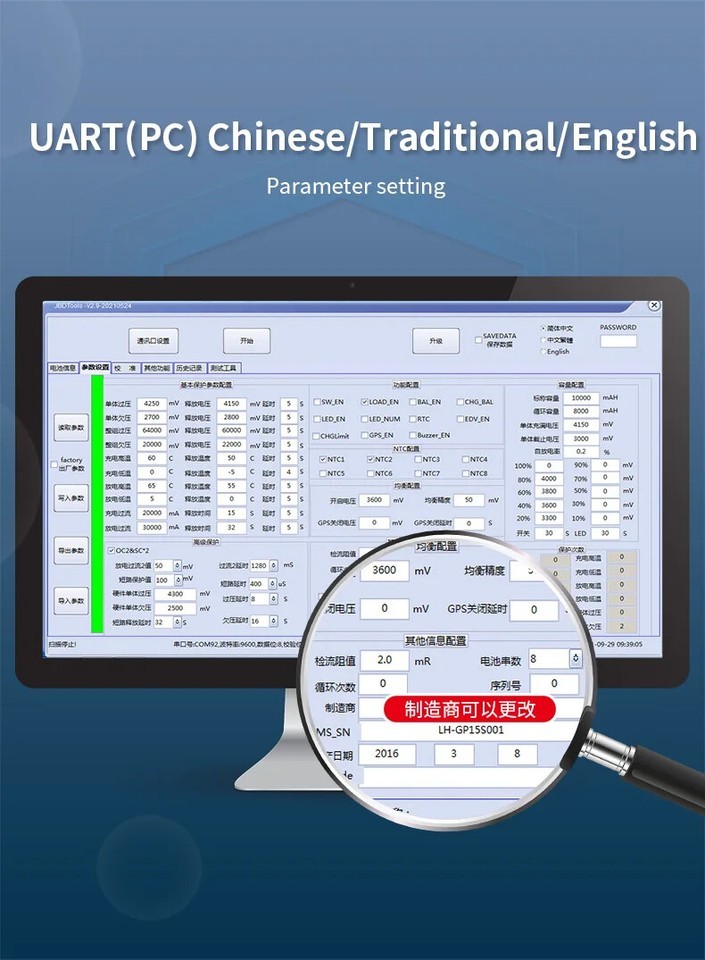 - Smart LiFePO4 BMS 6S - 22S Li-ion Bluetooth 40A 50A 80A 100A Balance Board Uart