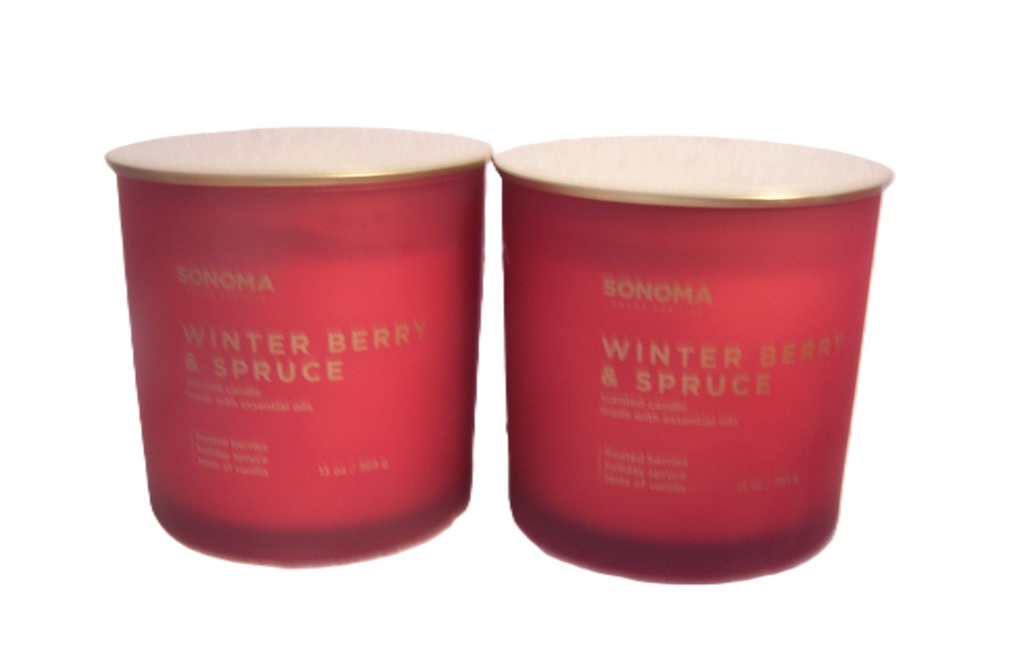- Sonoma Winter Berry Spruce Scented Candle 13 oz- Berries Spruce Vanilla Lot of 2