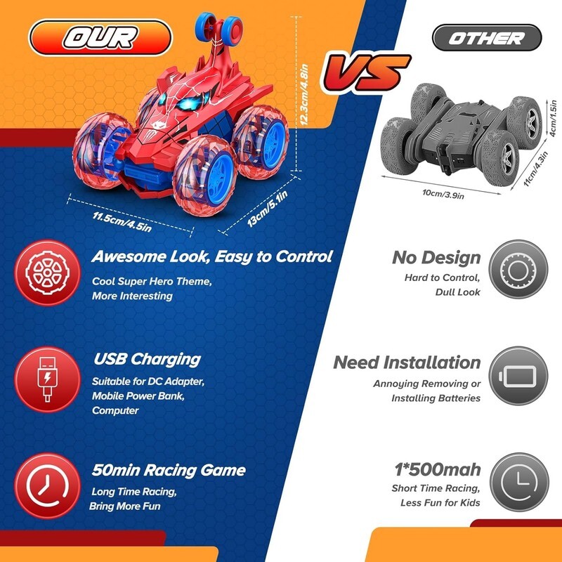 - Spider Remote Control Car Rc Cars Toys,Cool Rechargeable Stunt Rc Car with 360 F