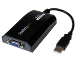 Product description: Optimal performance at 1920x1200 and ideal for use with 24" to 26" monitors or smaller Support for Aero themes in Windows Works with Mac OS X Connect up to five adapters to one PC for a true extended desktop experience USB-Powered operation, no external power adapter required Quick and easy installation Powered by DisplayLink DL-195 chip The USB2VGAPRO2 USB to VGA Adapter functions as an external graphics card for Windows and Mac computers - the perfect solution for turning your desktop or laptop computer into a dual or multi-monitor environment, all through the simplicity and convenience of USB. The USB-VGA Adapter delivers high quality video (up to 1920x1200) for a variety of applications and is capable of simultaneously running up to five additional displays from a single computer (using four USB2VGAPRO2 External Video Adapters). The adapter connects to a host computer through a USB 2.0 port, acting as an external VGA video card to either extend or mirror the desktop shown on the existing display - without having to open the computer case. Featuring driver support for Microsoft Windows (including Aero themes) and Mac OS X, and with video support for resolutions up to 1920x1200, this USB-VGA video adapter is the ideal solution for a wide rade of operating environments as well as large-screen displays/monitors. The USB2VGAPRO2 USB to VGA Adapter is backed by a StarTech.com 2-year warranty and free lifetime technical support. Add multiple (up to five) monitors / projectors to your computer setup using one USB2VGAPRO2 device for each additional display View large or multiple spreadsheets across multiple displays Increase productivity by running multiple applications on different VGA screens; check your email on one display while editing a document on the other Use the USB-VGA adapter to connect your PC to your television for showing family pictures and movies Connect multiple VGA monitors to a single computer to create engaging multimedia presentations Great for researchers and writers offering the ability to have reference material on one display and a working document copy on the other The graphics adapter supports high-performance requirements and high resolution video, making it suitable for connecting large-screen monitors USB-powered operation eliminates the need for an external power adapter, enabling you to position an additional monitor without having to make the extra power connection or carry an additional cable for mobile applications Completely external device offers a simple upgrade solution saving the cost and hassle of upgrading the internal video card on your system, which in many cases would void manufacturers' warranties A.B. Distributing, Inc. STAR-USB2VGAPRO2 ASI 135826 D H USB2VGAPRO2 INTCOMEX Latin America IO000GEN45 Ingram Micro USA RB2674 TD SYNNEX STA-USB2VGAPRO2 UPC 065030847995 Specifications Warranty Information Warranty 2 Years Connector(s) Connector Type(s) 1 - USB 2.0 Type-A (4 pin, 480Mbps) 1 - VGA (15 pin, High Density D-Sub) Environmental Operating Temperature 10C to 40C (50F to 104F) Storage Temperature -10C to 80C (14F to 176F) Humidity 85% non-condensing Hardware AV Input USB 2.0 AV Output VGA USB Pass-Through No Memory 16MB Chipset ID DisplayLink - DL-195 Indicators LED Indicators 1 - Blue - Power Packaging Information Package Height 1.6 in [4.0 cm] Package Length 8.2 in [20.8 cm] Shipping (Package) Weight 6.8 oz [192.0 g] Package Width 5.7 in [14.6 cm] Package Quantity 1 Performance Maximum Analog Resolutions 1920x1200 (32-bit Color) Supported Resolutions Standard(16/32 bit): 640x480, 800x600, 1024x768, 1280x1024, 1600x1200 Widescreen(16/32 bit): 1366x768, 1440X900, 1680x1050, 1920x1200 MTBF 87,703 hours Physical Characteristics Weight of Product 2.3 oz [64 g] Color Black Cable Length 6.5 in [165 mm] Product Length 3.1 in [78 mm] Product Width 1.7 in [4.4 cm] Product Height 0.6 in [1.6 cm] Power Power Source USB-Powered Software OS Compatibility Windows XP (32-bit), Vista, 7, 8, 8.1, 10, 11 macOS 10.6 - 10.12, 10.14 - 10.15, 11.0, 12.0, 13.0, 14.0 Chrome OS v55+ Ubuntu 14.04, 16.04, 18.04, 20.04, 22.04 Special Notes / Requirements System and Cable Requirements System Processor: 1.2GHz System Memory: 512MB Note Power PC-based Macintosh computers, such as late-model iMacs, PowerBooks and PowerMacs, are not currently supported Connect a maximum of five USB video adapters on a single computer. Support for multiple adapters will vary depending upon your system resources This USB video adapter is not intended for graphical intensive applications, such as gaming What's in the Box Included in Package 1 - USB to VGA Adapter 1 - Driver CD 1 - Instruction Manual