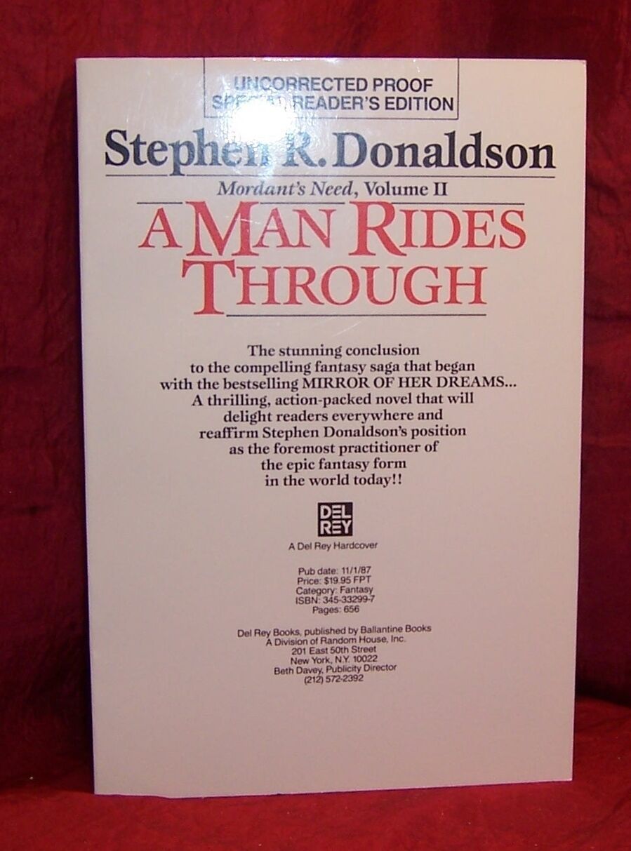 - Stephen R. Donaldson A MAN RIDES THROUGH First Edition SCARCE Uncorrected Proof