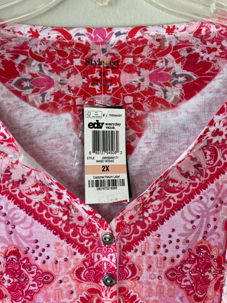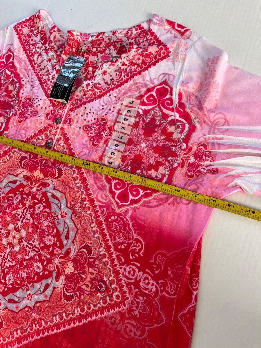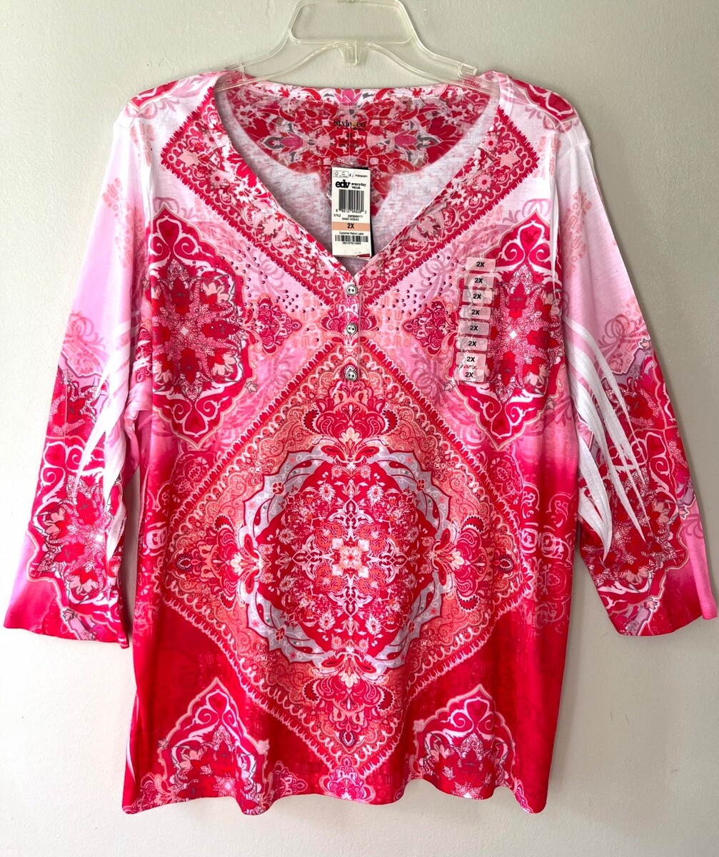 - Style n Co Plus Sz 2X Pink Pintuck Blouse Pullover V Neck Stretch Mandala