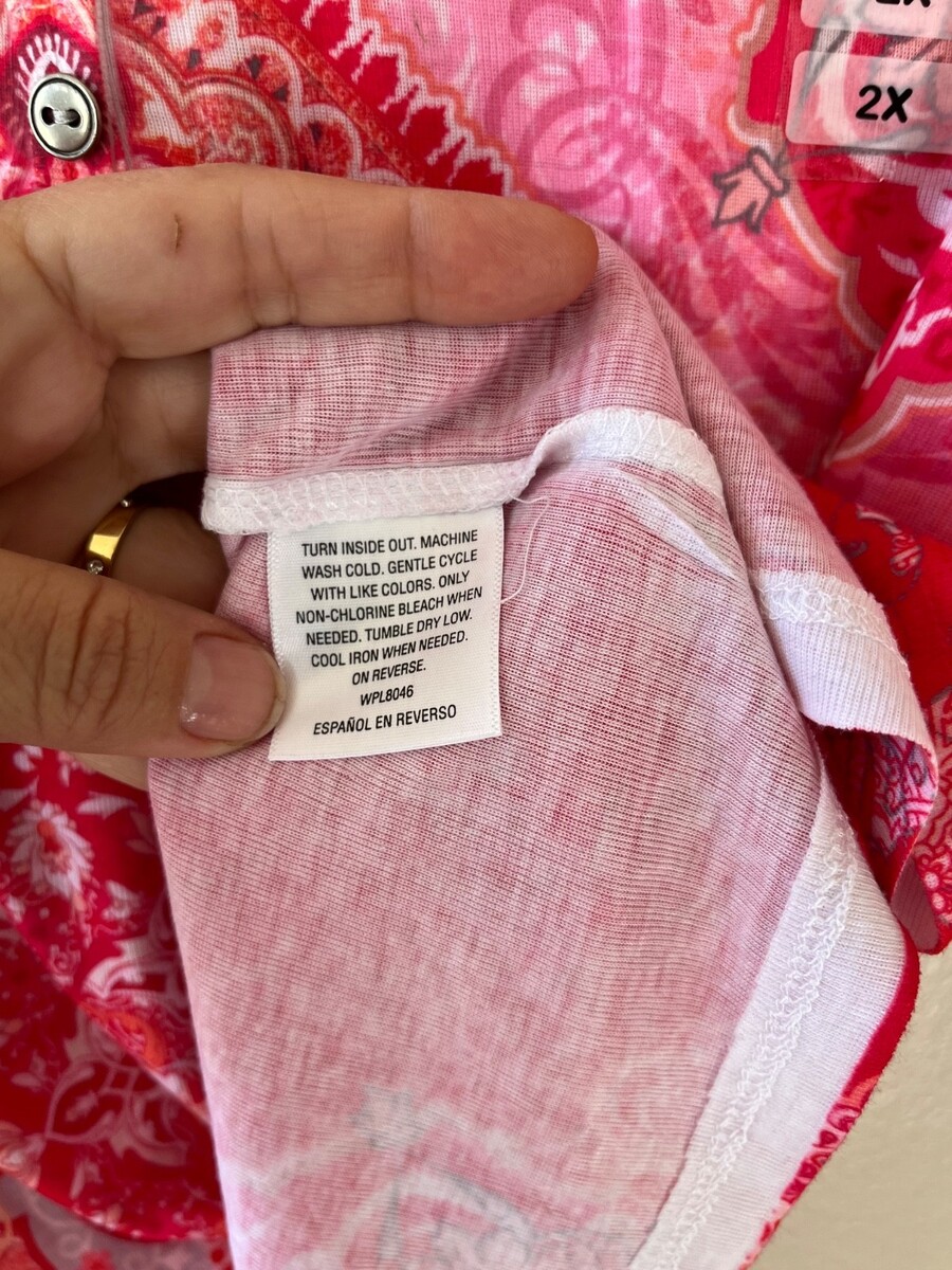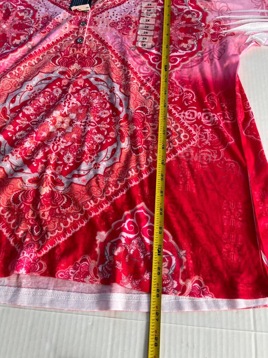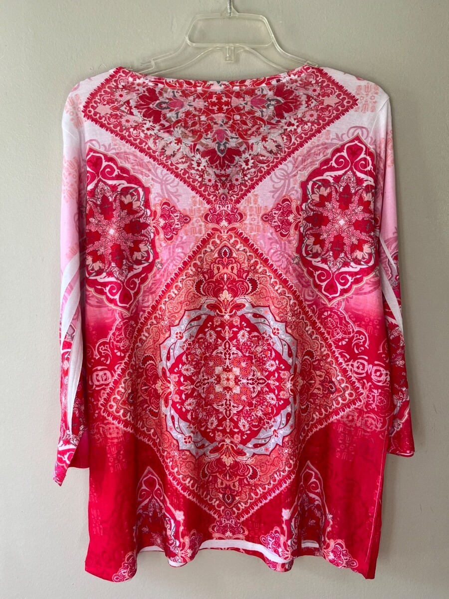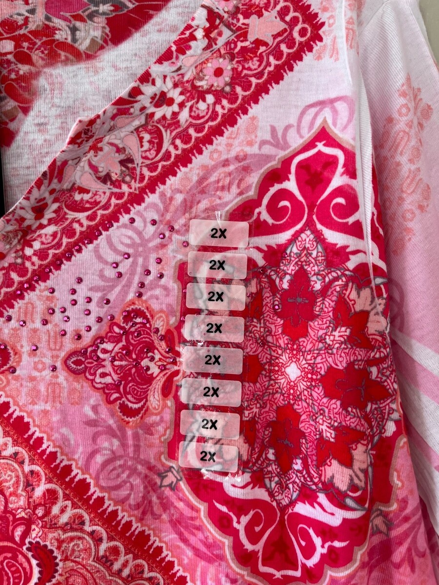 - Style n Co Plus Sz 2X Pink Pintuck Blouse Pullover V Neck Stretch Mandala