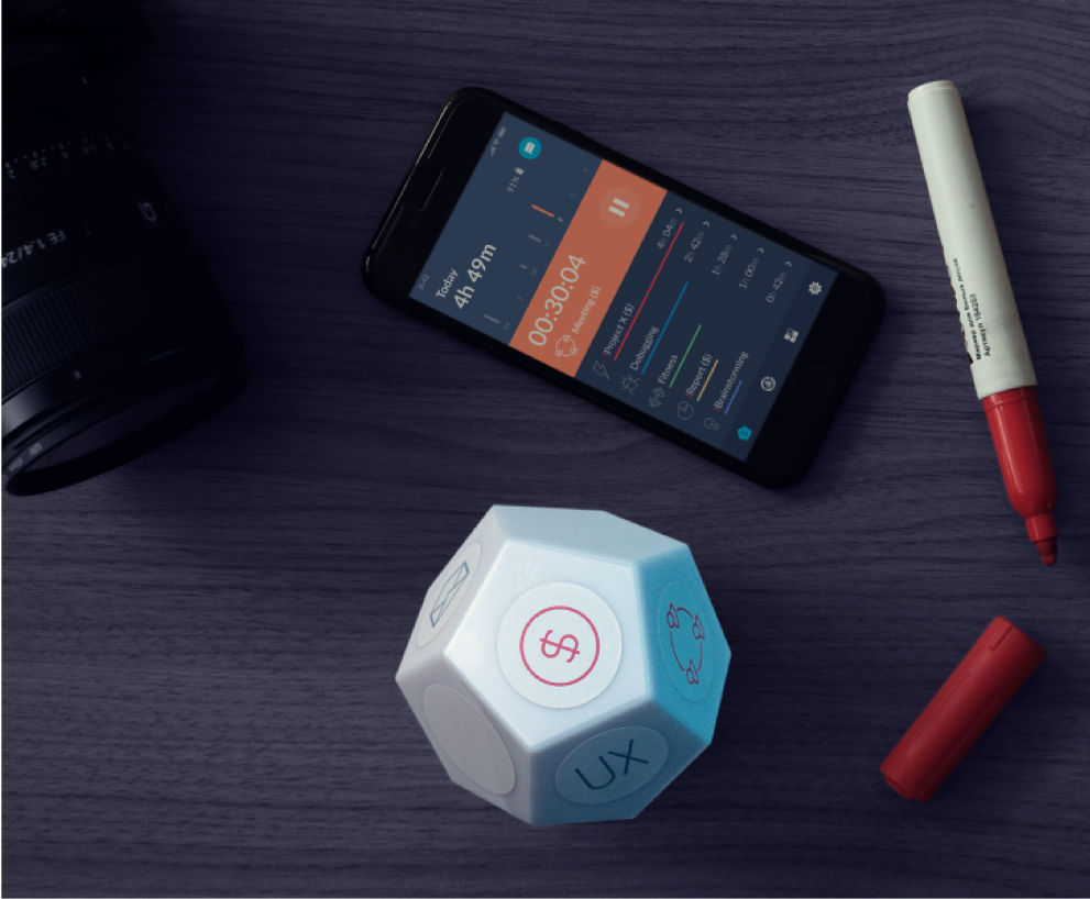 The 12-sided dice serves as your input device. You can assign up to a dozen activities on each of the 12 sides. As you change between tasks, you simply flip the dice to initiate tracking of that task. The device is able to store tracking data locally, meaning there's no need to maintain a constant connection with the app, this removing unnecessary distraction and helping you keep the focus. TIMEFLIP2 is powered by completely Free proprietary iOS/Android and Web apps and Integrates with popular online calendars.