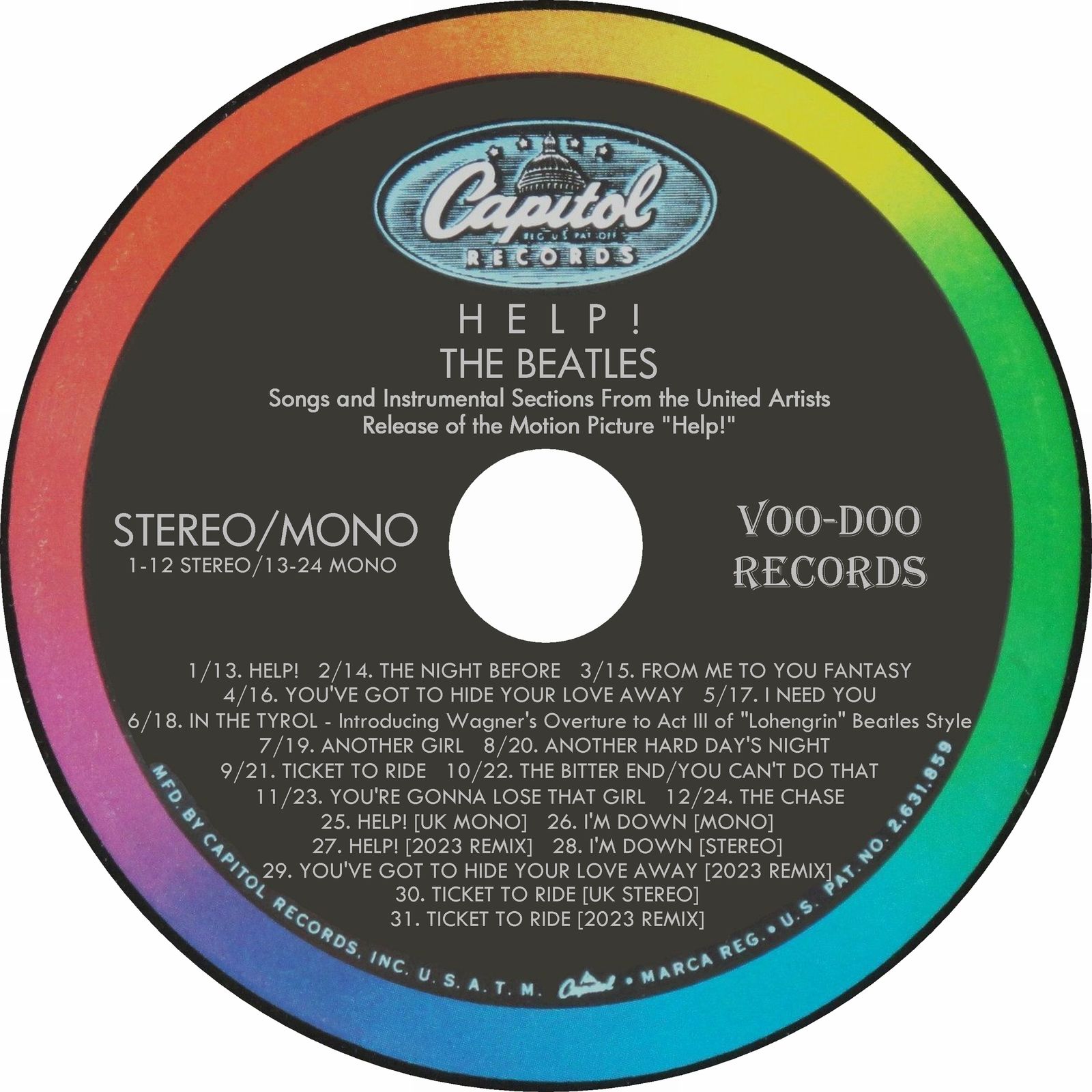 Recently remastered 2024 disc featuring ALL the original US stereo and mono mixes of the soundtrack 1965 Beatles release "Help!". Unlike the official "US Albums" release, this fan-made collection has the true US-specific mixes for each song. To top it off, seven bonus mixes have been included (including I'm Down - the B-side left off the original release), to give ALL the original UK mix variants as well several more recent remixes of the material.