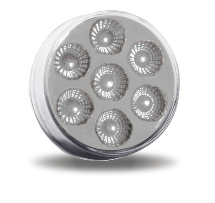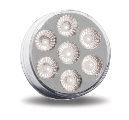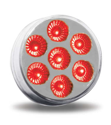 1 2-1/2" Round RED marker light with BACK-UP and clear lens. 7 diodes for bright, dependable performance. Features sonically sealed, waterproof lens and housing in a single unit. All-weather molded plastic housing and durable lens protect against corrosion.
